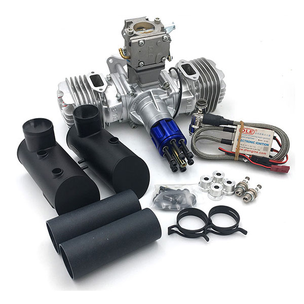 If you are looking for smooth, consistent performance in a 100cc engine, look no further. The DLE-130 Twin delivers that and more! Its twin opposed cylinders provide very smooth operation, while keeping weight low and producing the power your bird requires. Electronic ignition, spark plug and Pitts style mufflers are included.